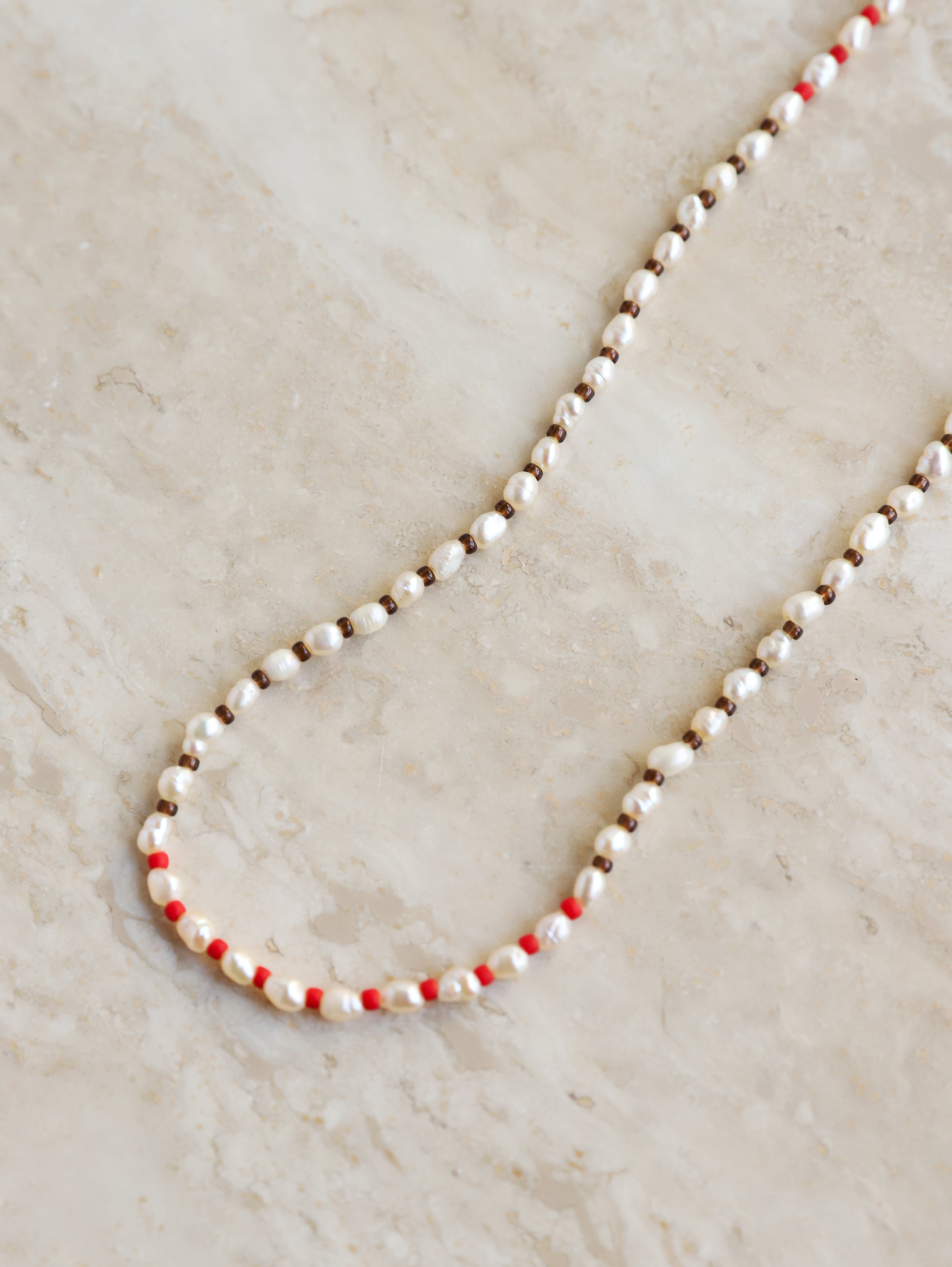 小さい淡水パールが連なった可愛くも抜群に合わせやすいcherish eyewear jewelryの一本は持っておきたいマストジュエリー。こちらにチャーミングなミックスカラーが登場。