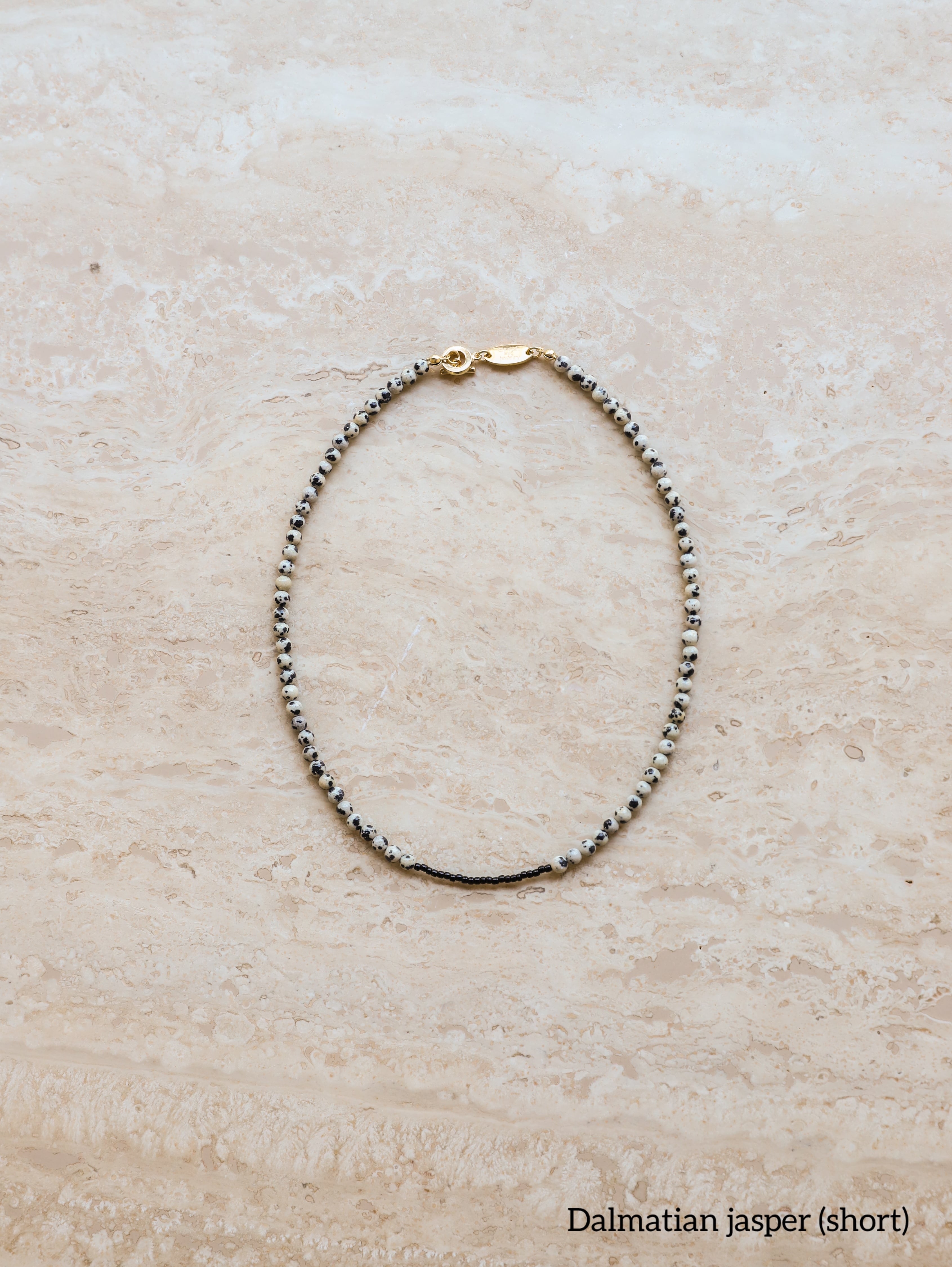 程よい長さでほかのジュエリーとの重ね付けもおすすめです。